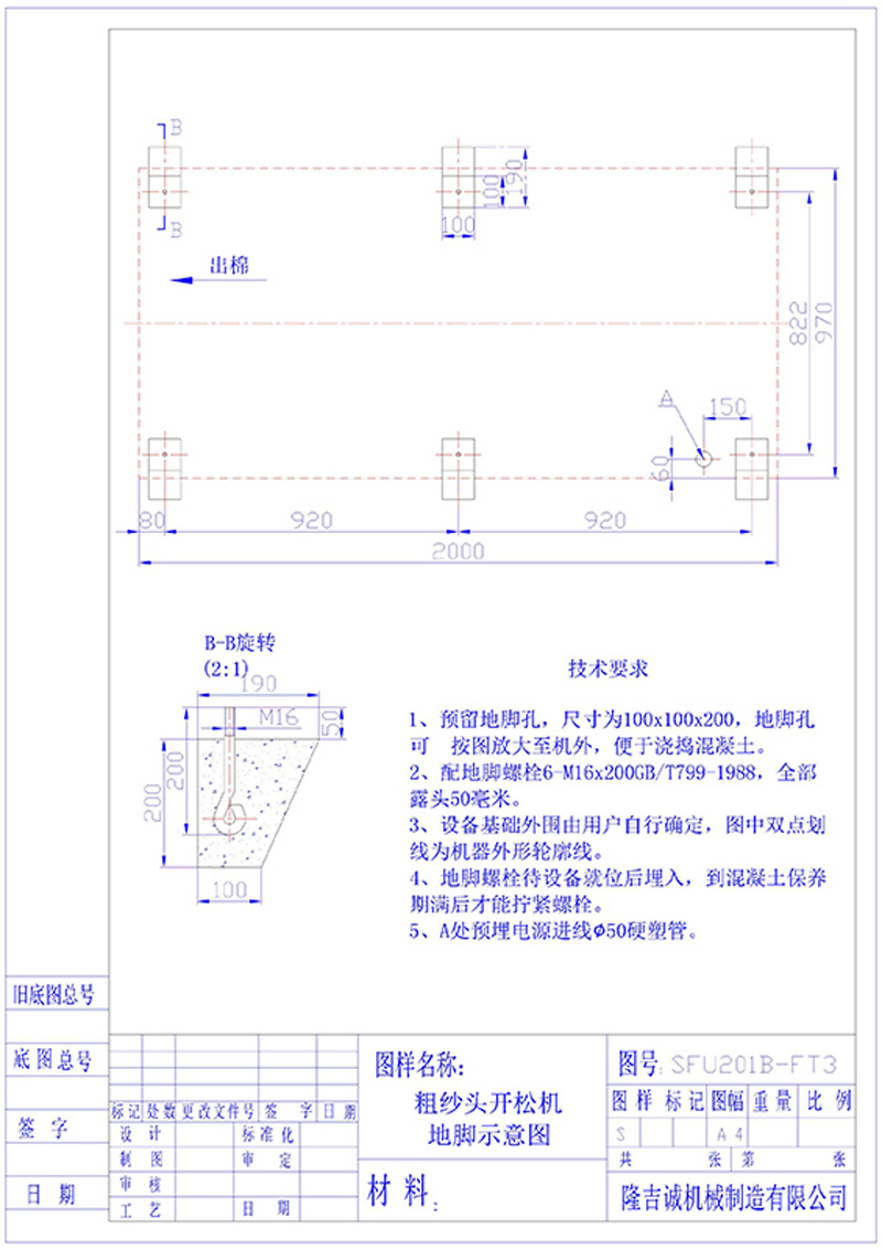 1.1、 安裝時(shí)參閱地腳設(shè)計(jì)示意圖(見SFU201B-FT3)