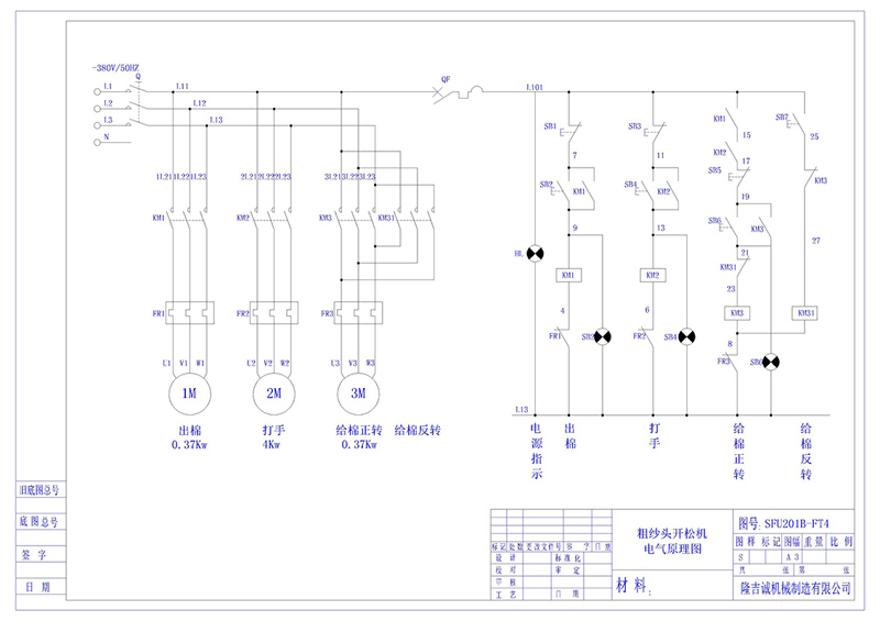 見SFU201B-FT4),等錫林啟動(dòng)平穩(wěn)后最后開啟喂棉電機(jī)。