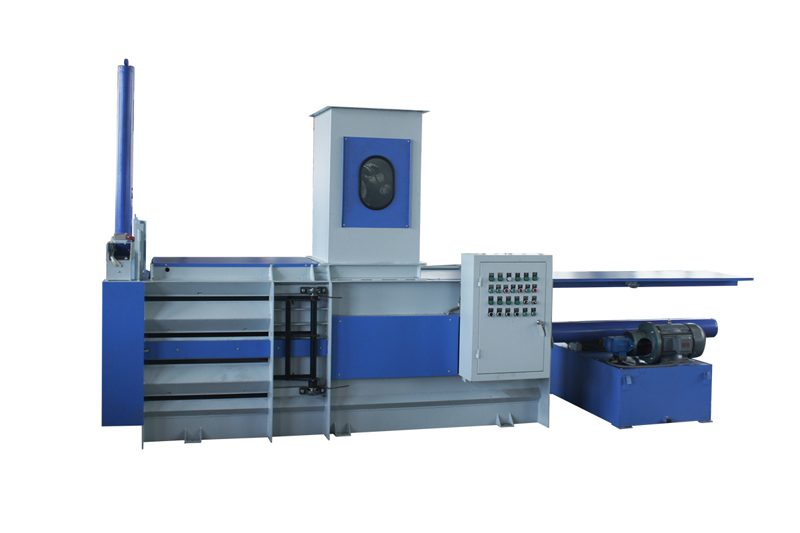 棉花經(jīng)處理機(jī)處理后,落入棉箱,當(dāng)棉層達(dá)到下棉箱光電管位置時,打包機(jī)壓棉油缸開始自動打包,成形后進(jìn)行人工捆綁處理。