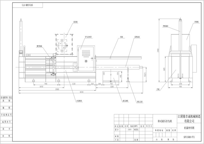 3.1 打包室體積為1000×600×855(mm)、1200×650×980(mm),打包室兩側(cè)墻板上有空槽,以穿打包帶用,打包室上方裝有上刀片。