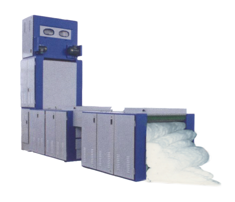 Cotton box locates under the condenser, with beater inside, one pair of feeding roller and small angle-dust club is at the lower position to remove the impurities. The content level of cotton inside is controlled by Optoelectronic-switch.