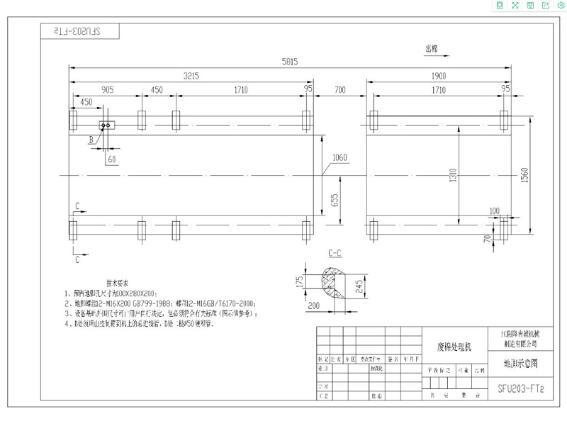 1.3 本機可與抓棉機、打包機及濾塵器等設(shè)備配套組成廢棉處理系統(tǒng)。